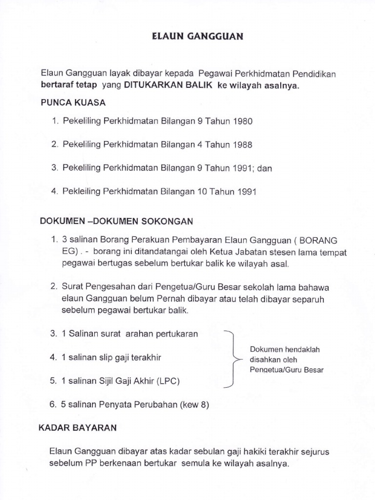 . Seseorang pelajar itu tidak akan menghadapi sebarang masalah atau gangguan semasa percakapan itu berlangsung. Tuntutan Elaun Gangguan perlu dikemukakan oleh pegawai kepada Ketua Jabatan dalam tempoh masa yang munasabah iaitu setelah arahan pertukaran dikeluarkan dan sebelum perpindahan berlaku atau dalam tempoh tiga 3 bulan dari tarikh arahan pertukaran. Portal Rasmi Jabatan Perkhidmatan Awam JPA.