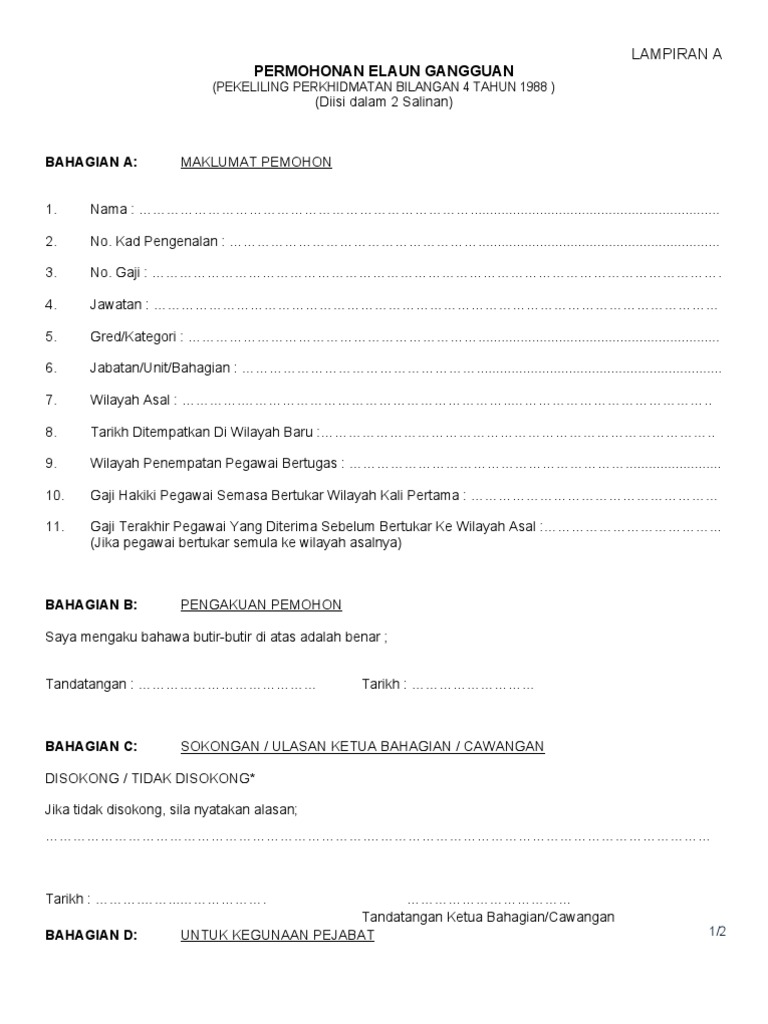 20 Borang Permohonan Elaun Gangguan Pdf