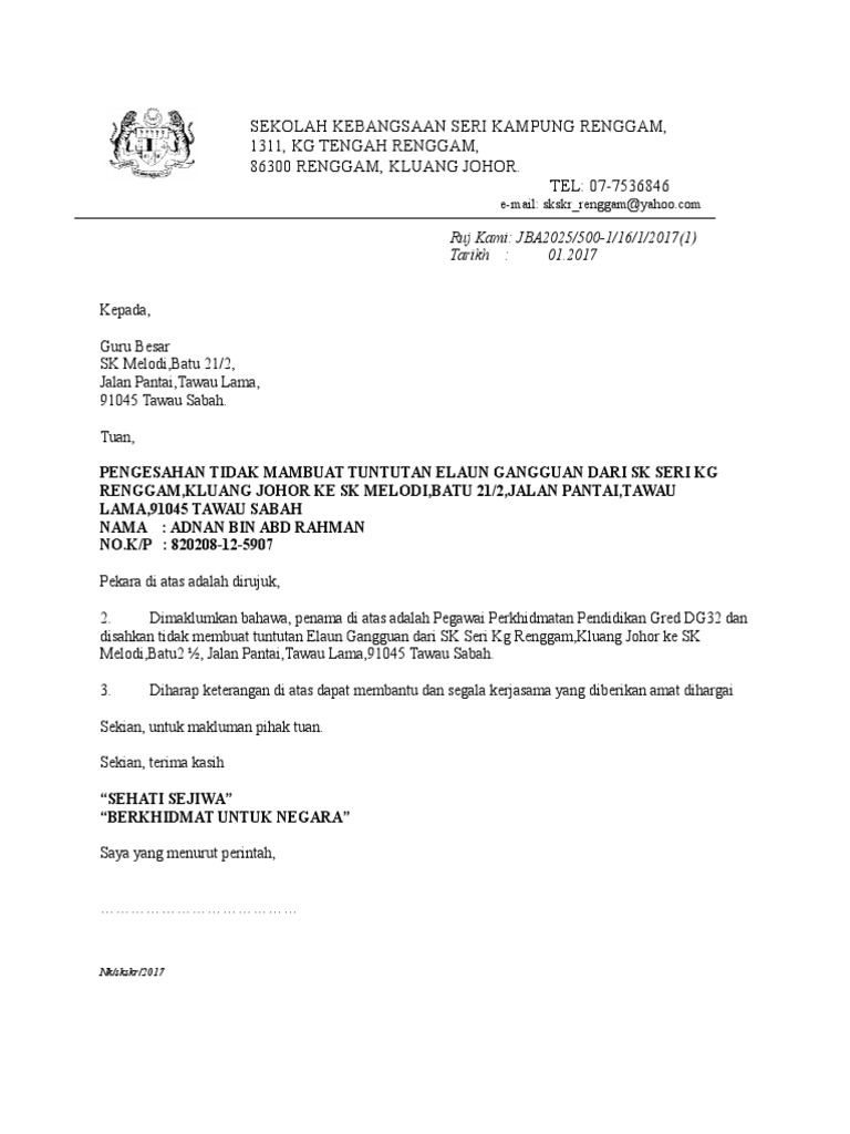 Contoh Surat Pengesahan Elaun Gangguan Kumpulan Contoh Surat Dan Soal Terlengkap