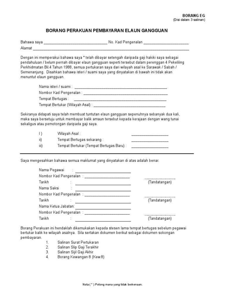 Borang Tuntutan Elaun Gangguan Bagi Pegawai Yang Bertukar Wilayah Pdf